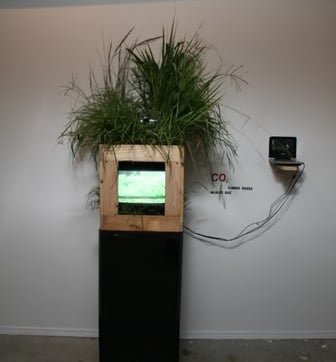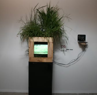 This interactive installation critiques the impact of CO₂ emissions while exploring our relationship with nature and technology. As viewers watch others running through grass, their own image is recorded, placing them within the cycle of observation and participation. The work highlights our disconnection from the environment—passively witnessing movement and life while contributing to the very systems that disrupt it. By embedding technology within an organic framework, the piece invites reflection on presence, action, and the invisible forces shaping our reality.